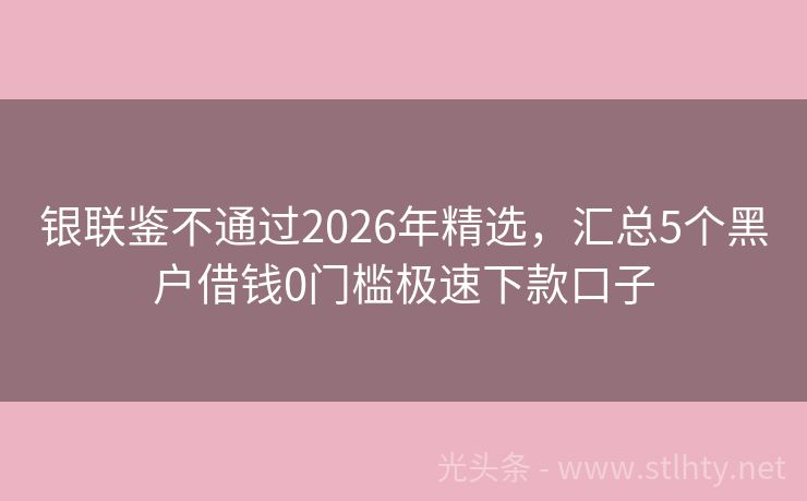 银联鉴不通过2026年精选,汇总5个黑户借钱0门槛极速下款口子