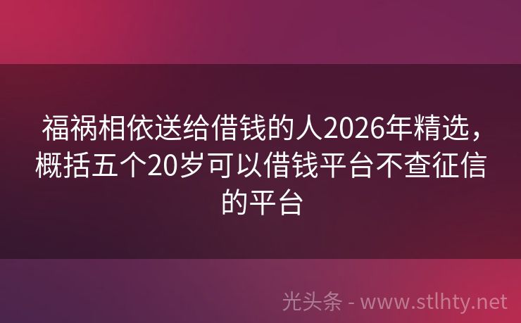 福祸相依送给借钱的人2026年精选,概括五个20岁可以借钱平台不查征信的平台