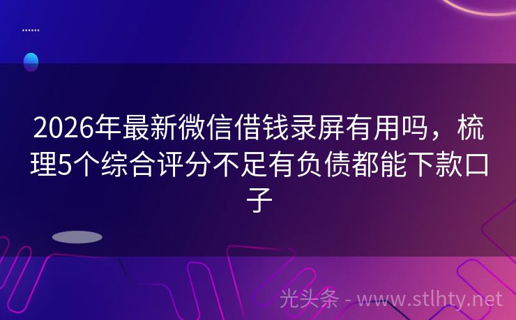 2026年的微信借钱录屏有用吗有:星梦借款、瞬信通、恒瑞财富网、金满堂、现金秒贷宝等。