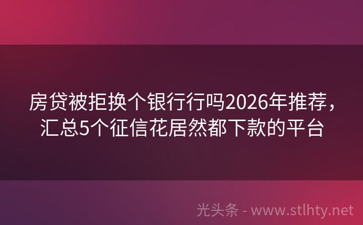 房贷被拒换个银行行吗2026年推荐,汇总5个征信花居然都下款的平台