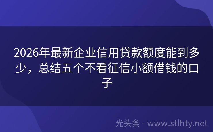 2026年最新企业信用贷款额度能到多少,总结五个不看征信小额借钱的口子