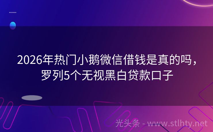 2026年热门小鹅微信借钱是真的吗,罗列5个无视黑白贷款口子