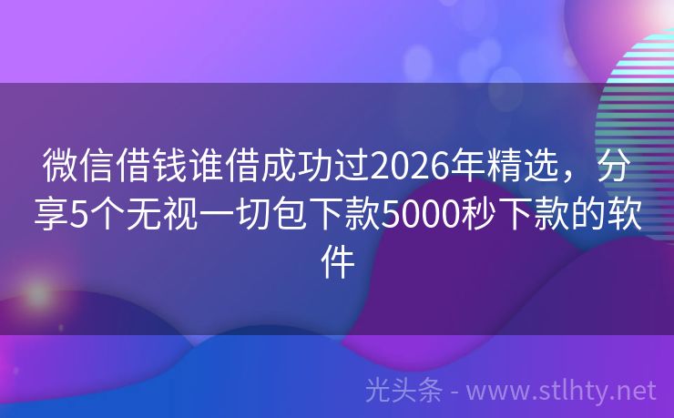 微信借钱谁借成功过2026年精选,分享5个无视一切包下款5000秒下款的软件