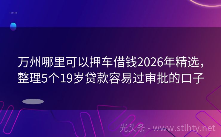 万州哪里可以押车借钱2026年精选,整理5个19岁贷款容易过审批的口子