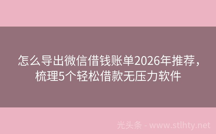 怎么导出微信借钱账单2026年推荐,梳理5个轻松借款无压力软件