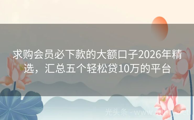 求购会员必下款的大额口子2026年精选,汇总五个轻松贷10万的平台