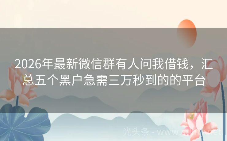 2026年最新微信群有人问我借钱,汇总五个黑户急需三万秒到的的平台