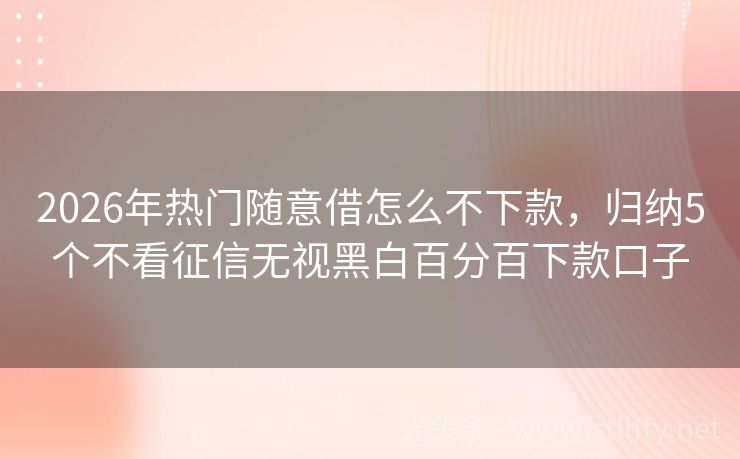2026年热门随意借怎么不下款,归纳5个不看征信无视黑白百分百下款口子