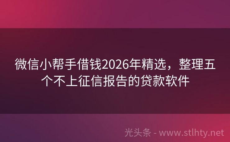 微信小帮手借钱2026年精选,整理五个不上征信报告的贷款软件