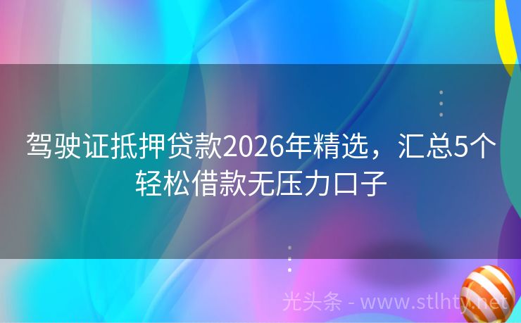 驾驶证抵押贷款2026年精选,汇总5个轻松借款无压力口子