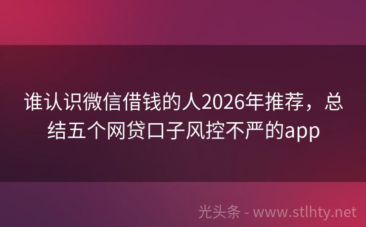 谁认识微信借钱的人2026年推荐,总结五个网贷口子风控不严的app