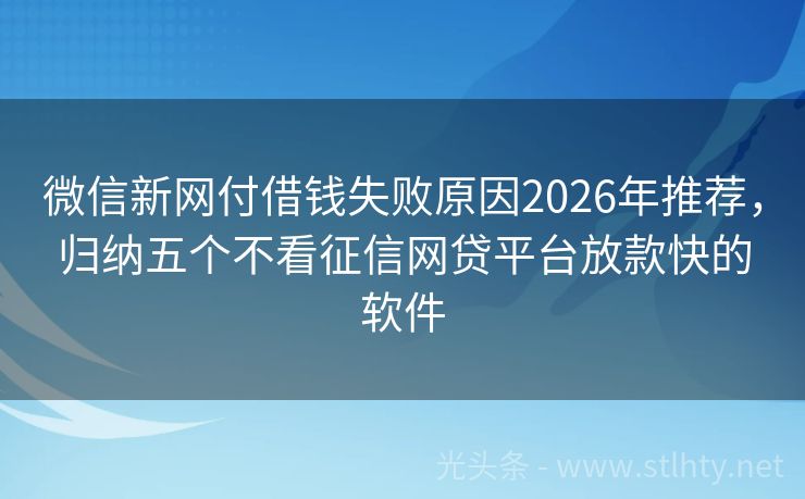 微信新网付借钱失败原因2026年推荐,归纳五个不看征信网贷平台放款快的软件