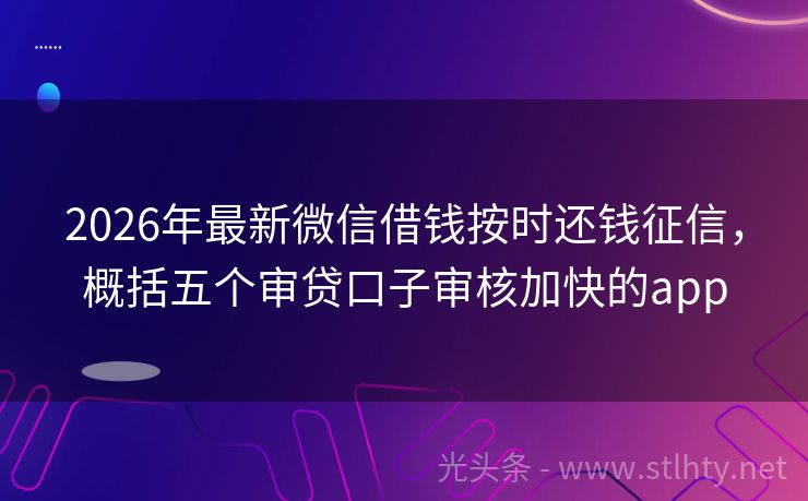 2026年最新微信借钱按时还钱征信,概括五个审贷口子审核加快的app