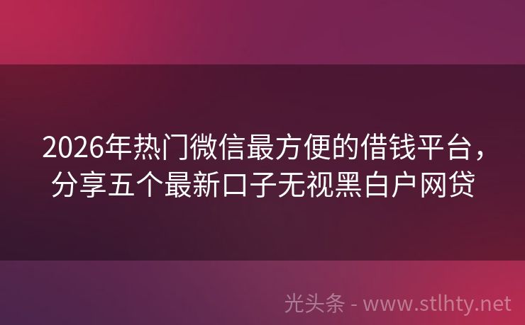 2026年热门微信最方便的借钱平台,分享五个最新口子无视黑白户网贷