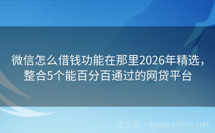 微信怎么借钱功能在那里2026年精选,整合5个能百分百通过的网贷平台