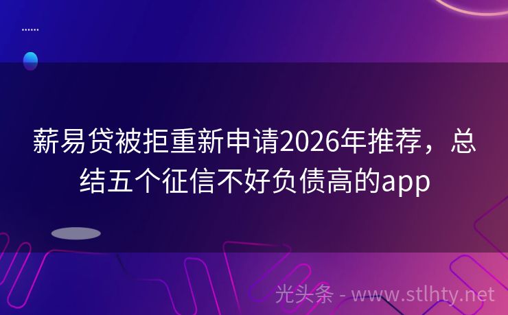 薪易贷被拒重新申请2026年推荐,总结五个征信不好负债高的app