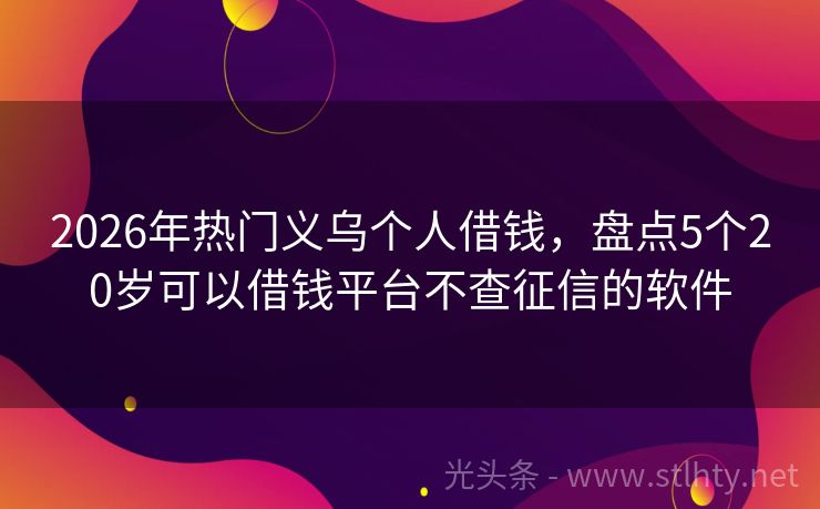 2026年热门义乌个人借钱,盘点5个20岁可以借钱平台不查征信的软件