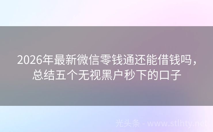 2026年最新微信零钱通还能借钱吗,总结五个无视黑户秒下的口子