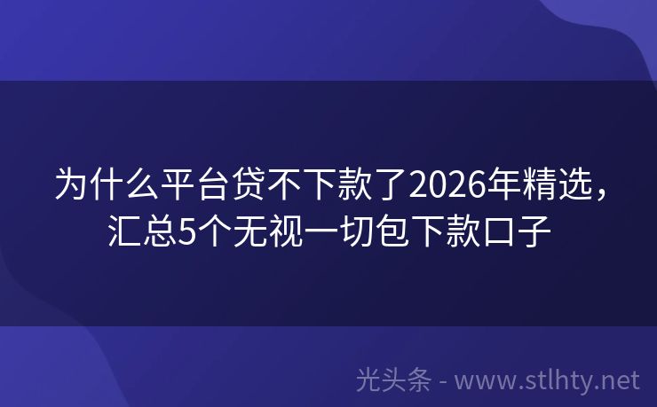 为什么平台贷不下款了2026年精选,汇总5个无视一切包下款口子