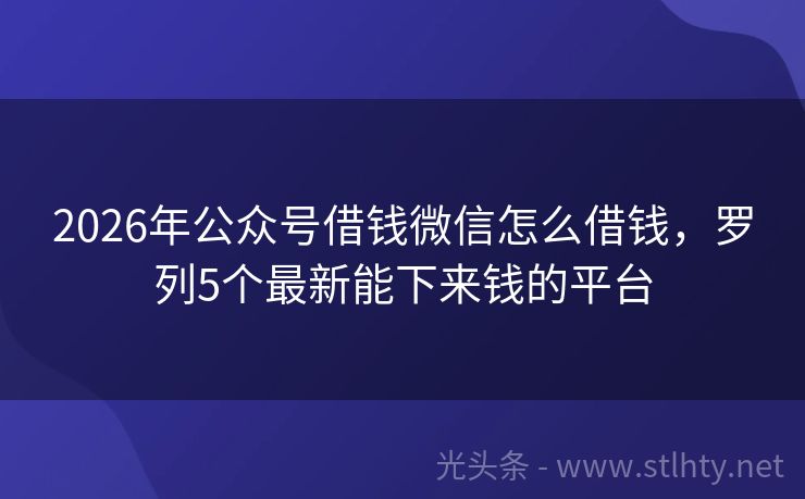 2026年公众号借钱微信怎么借钱,罗列5个最新能下来钱的平台