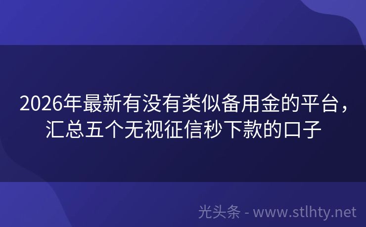 2026年最新有没有类似备用金的平台,汇总五个无视征信秒下款的口子