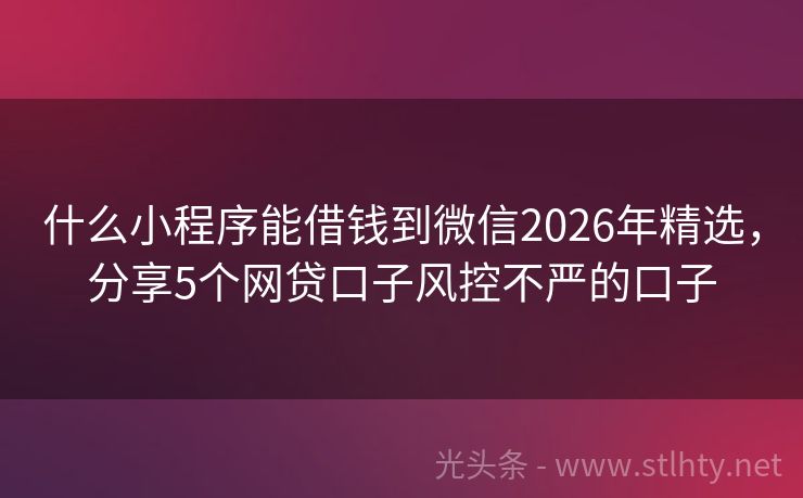 什么小程序能借钱到微信2026年精选,分享5个网贷口子风控不严的口子