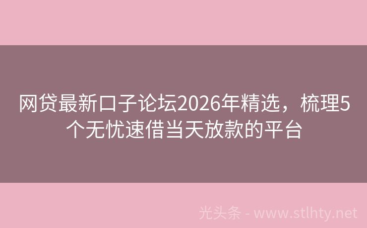 网贷最新口子论坛2026年精选,梳理5个无忧速借当天放款的平台