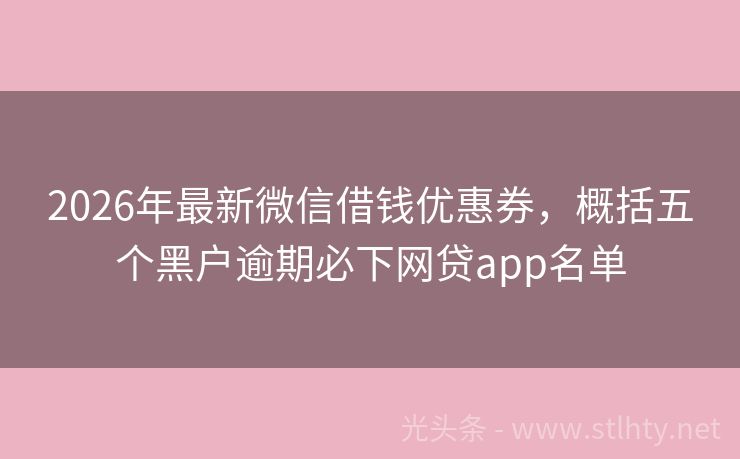 2026年最新微信借钱优惠券,概括五个黑户逾期必下网贷app名单