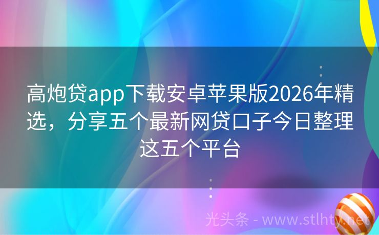 高炮贷app下载安卓苹果版2026年精选,分享五个最新网贷口子今日整理这五个平台