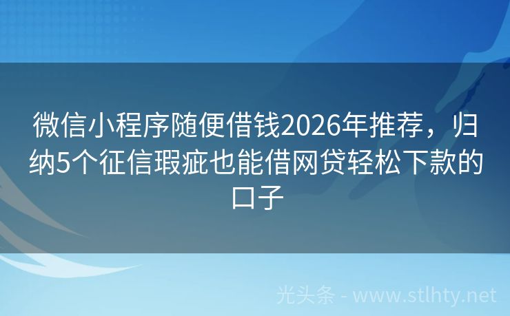 微信小程序随便借钱2026年推荐,归纳5个征信瑕疵也能借网贷轻松下款的口子