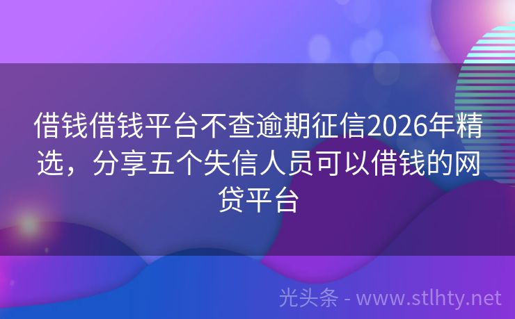 借钱借钱平台不查逾期征信2026年精选,分享五个失信人员可以借钱的网贷平台
