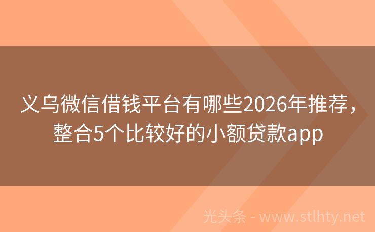 义乌微信借钱平台有哪些2026年推荐,整合5个比较好的小额贷款app