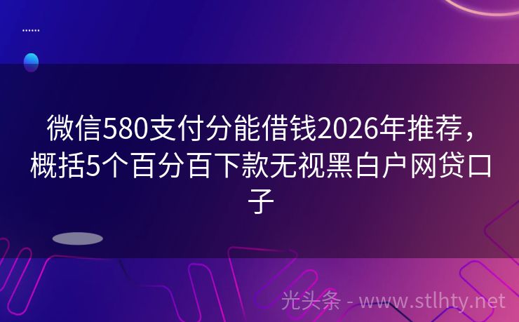 微信580支付分能借钱2026年推荐,概括5个百分百下款无视黑白户网贷口子