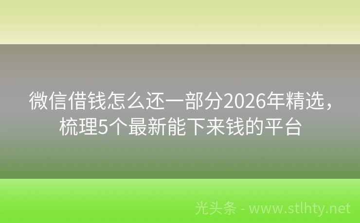 微信借钱怎么还一部分2026年精选,梳理5个最新能下来钱的平台