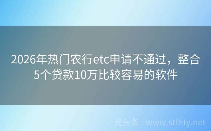 2026年热门农行etc申请不通过,整合5个贷款10万比较容易的软件