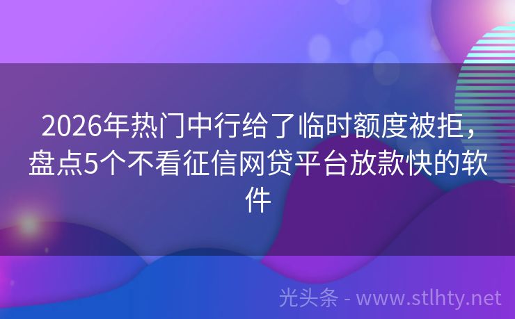 2026年热门中行给了临时额度被拒,盘点5个不看征信网贷平台放款快的软件