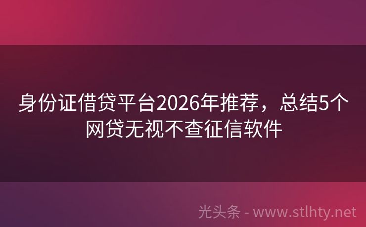身份证借贷平台2026年推荐,总结5个网贷无视不查征信软件