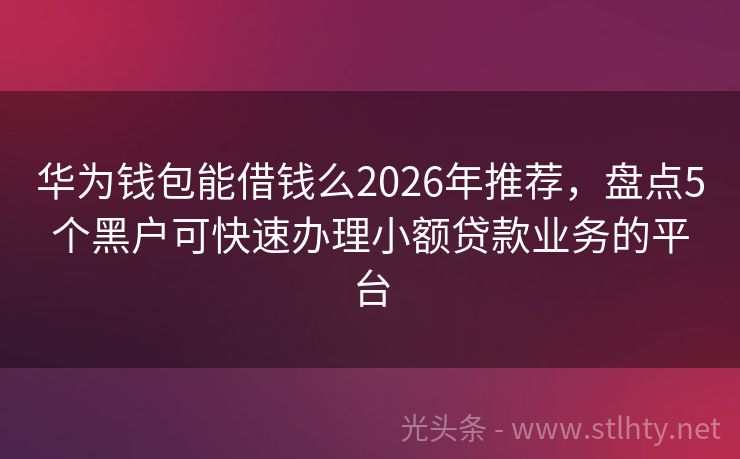 华为钱包能借钱么2026年推荐,盘点5个黑户可快速办理小额贷款业务的平台