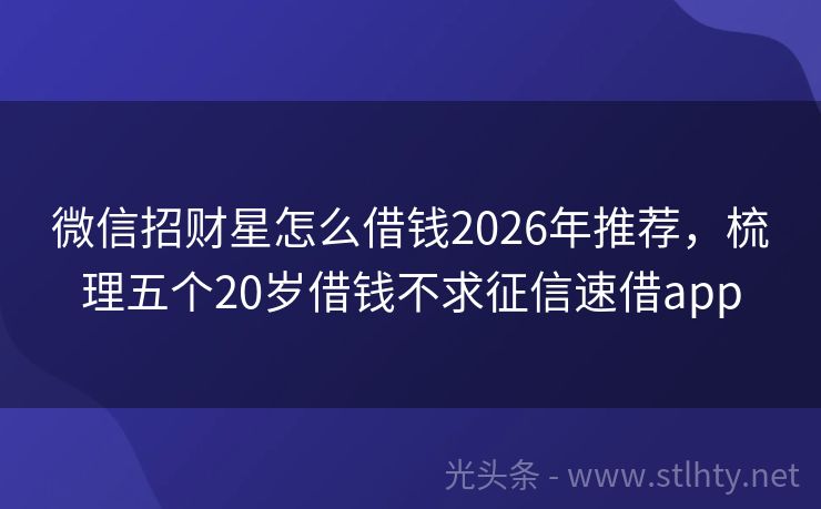 微信招财星怎么借钱2026年推荐,梳理五个20岁借钱不求征信速借app