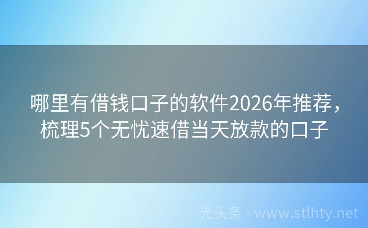 哪里有借钱口子的软件2026年推荐,梳理5个无忧速借当天放款的口子