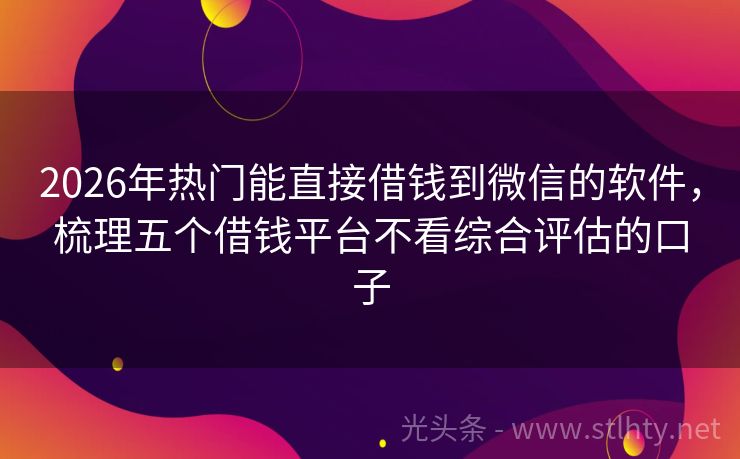 2026年热门能直接借钱到微信的软件,梳理五个借钱平台不看综合评估的口子