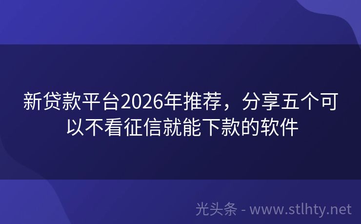 新贷款平台2026年推荐,分享五个可以不看征信就能下款的软件