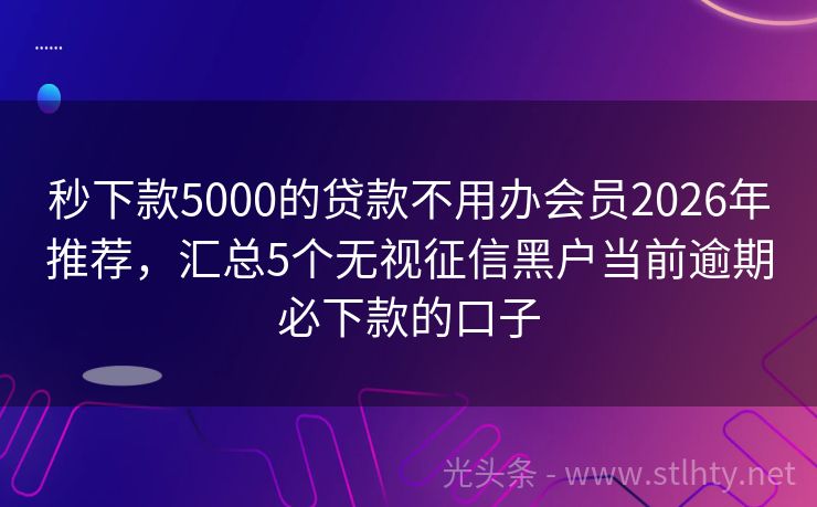 秒下款5000的贷款不用办会员2026年推荐,汇总5个无视征信黑户当前逾期必下款的口子