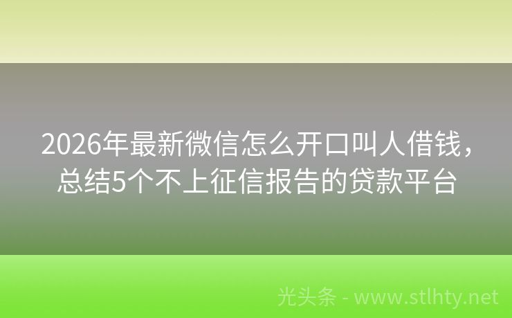 2026年最新微信怎么开口叫人借钱,总结5个不上征信报告的贷款平台
