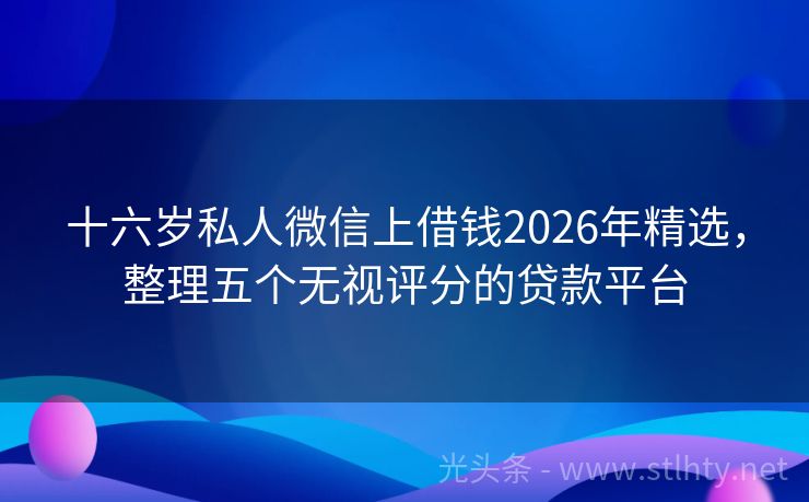 十六岁私人微信上借钱2026年精选,整理五个无视评分的贷款平台