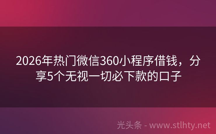 2026年热门微信360小程序借钱,分享5个无视一切必下款的口子