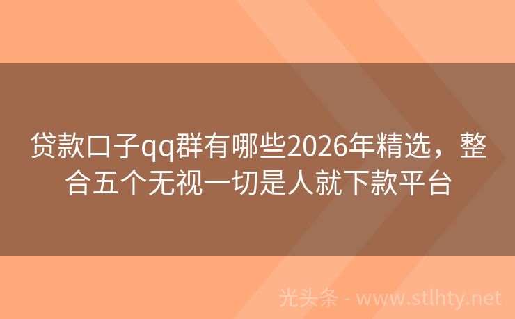 贷款口子qq群有哪些2026年精选,整合五个无视一切是人就下款平台