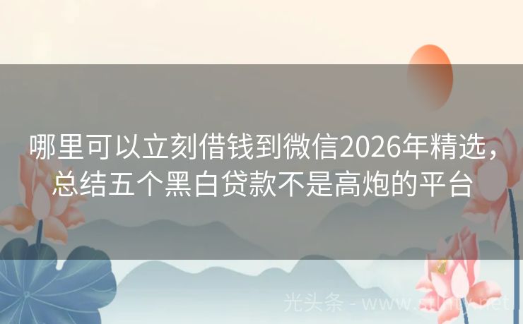 哪里可以立刻借钱到微信2026年精选,总结五个黑白贷款不是高炮的平台