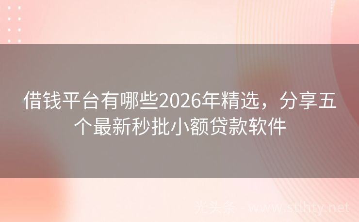 借钱平台有哪些2026年精选,分享五个最新秒批小额贷款软件