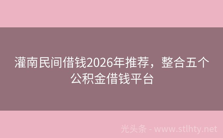 灌南民间借钱2026年推荐,整合五个公积金借钱平台